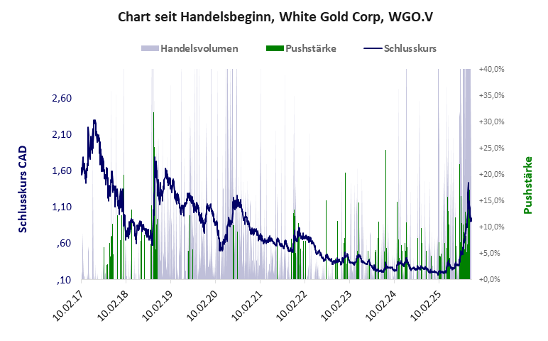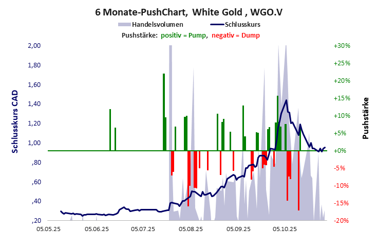 White Gold hat ein akzeptables Gesamtscoring und ist ein Pennystock mit einem starken Kursverlust. Das Gesamtvermögen ist groß, die Vermögenswerte scheinen nicht werthaltig zu sein, der Umsatz ist nicht existent, die Ertragslage extrem verlustreich, die Geldverbrennung gering.