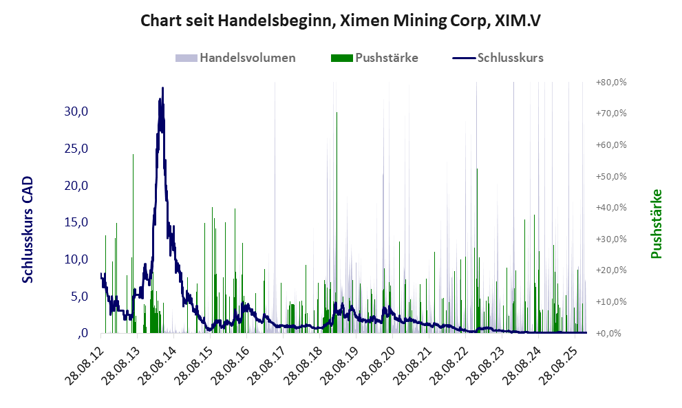 Ximen Mining ist ein Winzling mit einer Muell-Aktie der Klasse V und den Eckdaten: