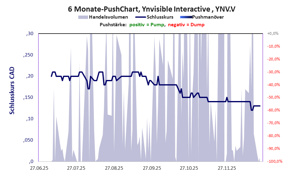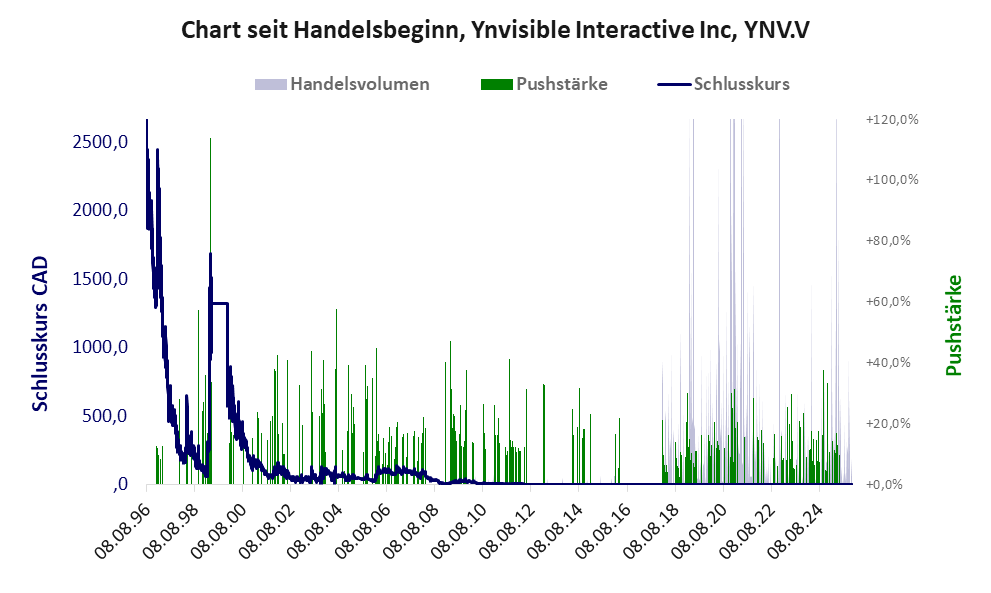 Es ist immer wieder erstaunlich, wie lange sich eine im Grunde völlig wertlose Aktie im Handel halten kann. Der Kurs dümpelt nahe über null dahin, aber mit einer gezielten Handelsstrategie wird immer noch etwas Geld aus dem Markt gepresst. Bei dieser Aktie liegt das „Inkassomodell“ vor, bei dem der Aktienkurs zu Beginn der Geschichte sein Allzeithoch hat. Die Akteure verkaufen schon zu Beginn nach und nach ihre billigst erworbenen Aktien, so dass der Kurs in verhältnismäßig kurzer Zeit abstürzt. Danach dümpelt der Aktienkurs in den meistn Fällen nahe null dahin und die Aktie dient nur noch kleineren, dennoch gewinnbringenden Pushmanövern und in vielen Fällen dem Algotrading. Dem ersten Einbruch nachfolgende größere Pushmanöver sind aber nicht ausgeschlossen. Bei dieser Aktie vollzogen die Akteure mindestens einen Pump & Dump und leerten damit ganz gezielt die Taschen der Anleger. Obwohl das Vorgehen rechtswidrig ist, erfolgt kaum je eine Strafverfolgung.
