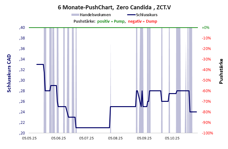 nur Müll, sonst nichts, wenngleich noch nicht gepusht. Zero Candida hat ein schwaches Gesamtscoring und ist ein kleiner Pennystock mit einem riesigen Kursverlust. Das Gesamtvermögen ist nahezu null, die Vermögenswerte scheinen nicht werthaltig zu sein, der Umsatz ist nicht existent, die Ertragslage extrem verlustreich, die Geldverbrennung extrem hoch.