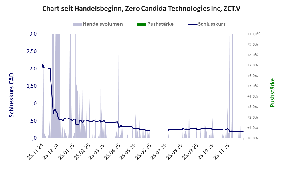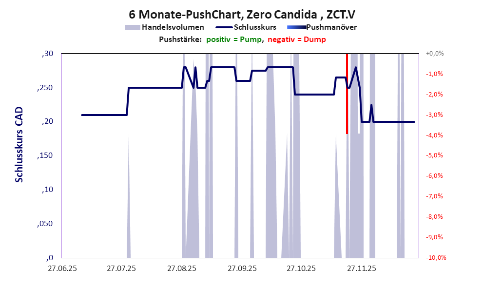 nur Müll, sonst nichts, wenngleich noch nicht gepusht. Bei dieser Aktie liegt das „Inkassomodell“ vor, bei dem der Aktienkurs zu Beginn der Geschichte sein Allzeithoch hat. Die Akteure verkaufen schon zu Beginn nach und nach ihre billigst erworbenen Aktien, so dass der Kurs in verhältnismäßig kurzer Zeit abstürzt. Danach dümpelt der Aktienkurs in den meistn Fällen nahe null dahin und die Aktie dient nur noch kleineren, dennoch gewinnbringenden Pushmanövern und in vielen Fällen dem Algotrading. Dem ersten Einbruch nachfolgende größere Pushmanöver sind aber nicht ausgeschlossen.